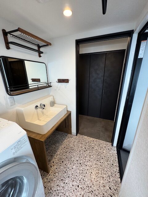 | 設備・条件 | 水回り: B・T別、シャワー、追焚機能、浴室暖房、浴室乾燥機、浴室に窓あり、トイレ2ヶ所、温水洗浄便座、洗面所独立、シャワー付洗面化粧台 キッチン: 3口以上コンロ、IHクッキングヒーター、アイランドキッチン 収納: 全居室収納、大型ウォークインクローゼット(3階に配置、2〜3人分収納可能) 空調・照明: エアコン2台以上、シーリングファン、間接照明、ダウンライト その他室内: 室内洗濯機置場、洗濯乾燥機、家具・家電付、給湯(都市ガス)、全居室フローリング、モニタ付インターホン 建物・構造: 3面採光、24時間換気システム、メゾネット構造、屋上利用可 外装・共有部: 駐輪場(入口階段下に2台分スペースあり) |